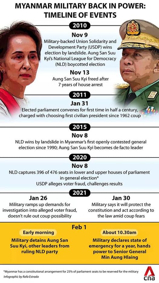 যাহোক, আসল বিষয়ে আসি। যতটুকু জানা যায় সুচিকে গ্রেফতারের কারণ দেখানো হয়েছে যে,”তাঁর দল গত নির্বাচনে ভোট কারচুপি করে ক্ষমতায় এসেছে”। সেদেশের সেনাবাহিনী মনে করেছে যে জনগনের ভোট চুরি করা মহা অন‍্যায়। তাই তাঁরা সেদেশের ক্ষমতাসীনদের আটক করেছে অথবা গ্রেফতার করেছে।